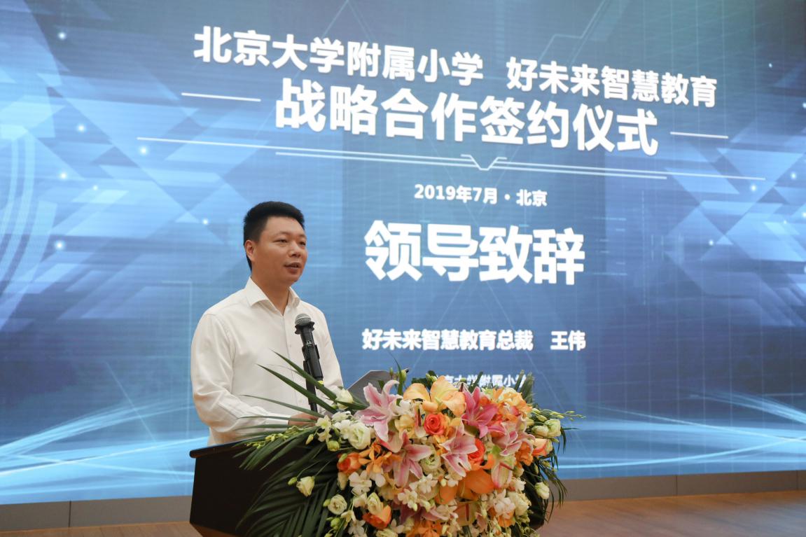 随后,好未来智慧教育总裁王伟介绍了好未来集团的基本情况,以及与北大附小的合作目标及合作内容。