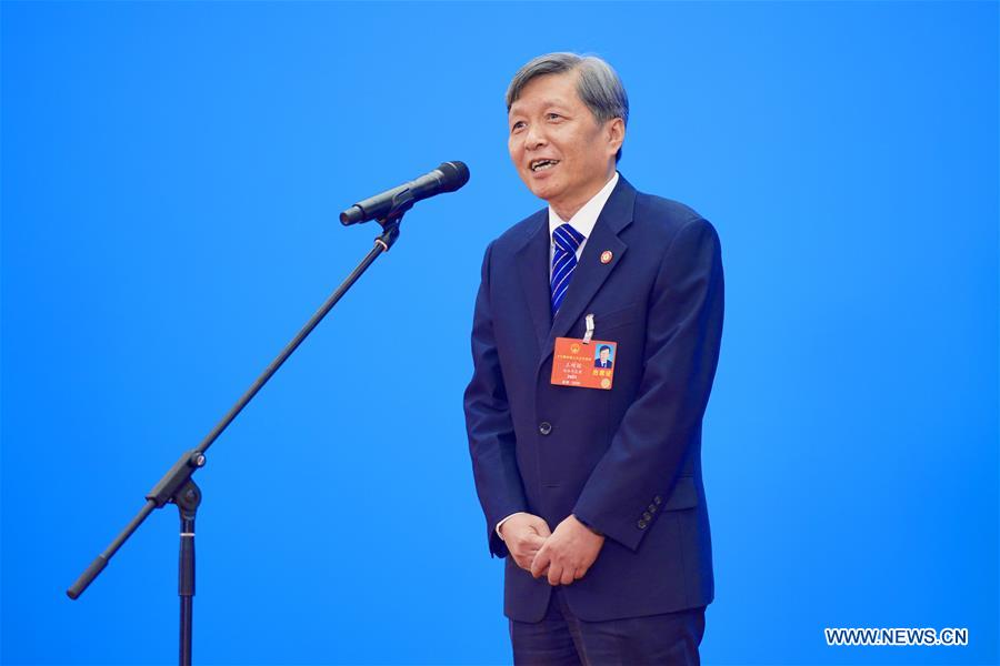 Wang Shuguo, a deputy to the 13th National People's Congress (NPC), gives an interview via video link before the second plenary meeting of the third session of the 13th NPC at the Great Hall of the People in Beijing, capital of China, May 25, 2020. [Photo/Xinhua]